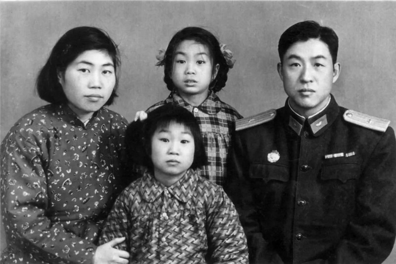 1959年,四口之家留念,女孩们带着头花,打扮得漂漂亮亮