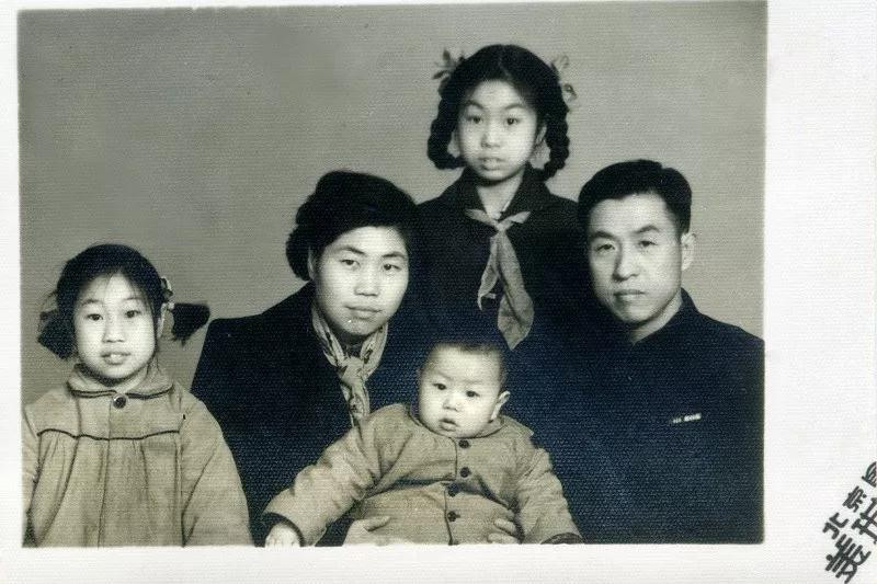 1962年的全家福,家中又添新丁,爱美的女士用丝巾作装饰,大女儿戴上了红领巾