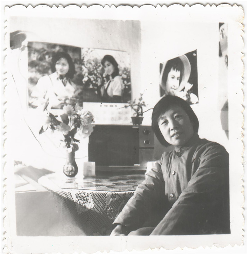 1980年,张兵母亲坐在家里买的第一台电视机前拍照